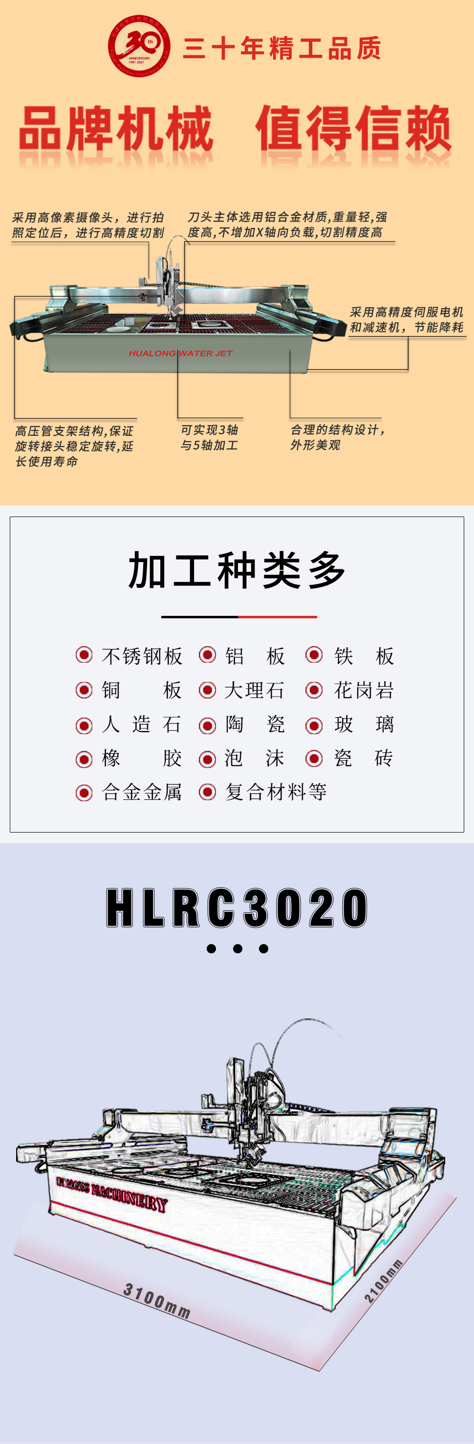 HLWJ2015/3020/4020五軸數控水刀切割機